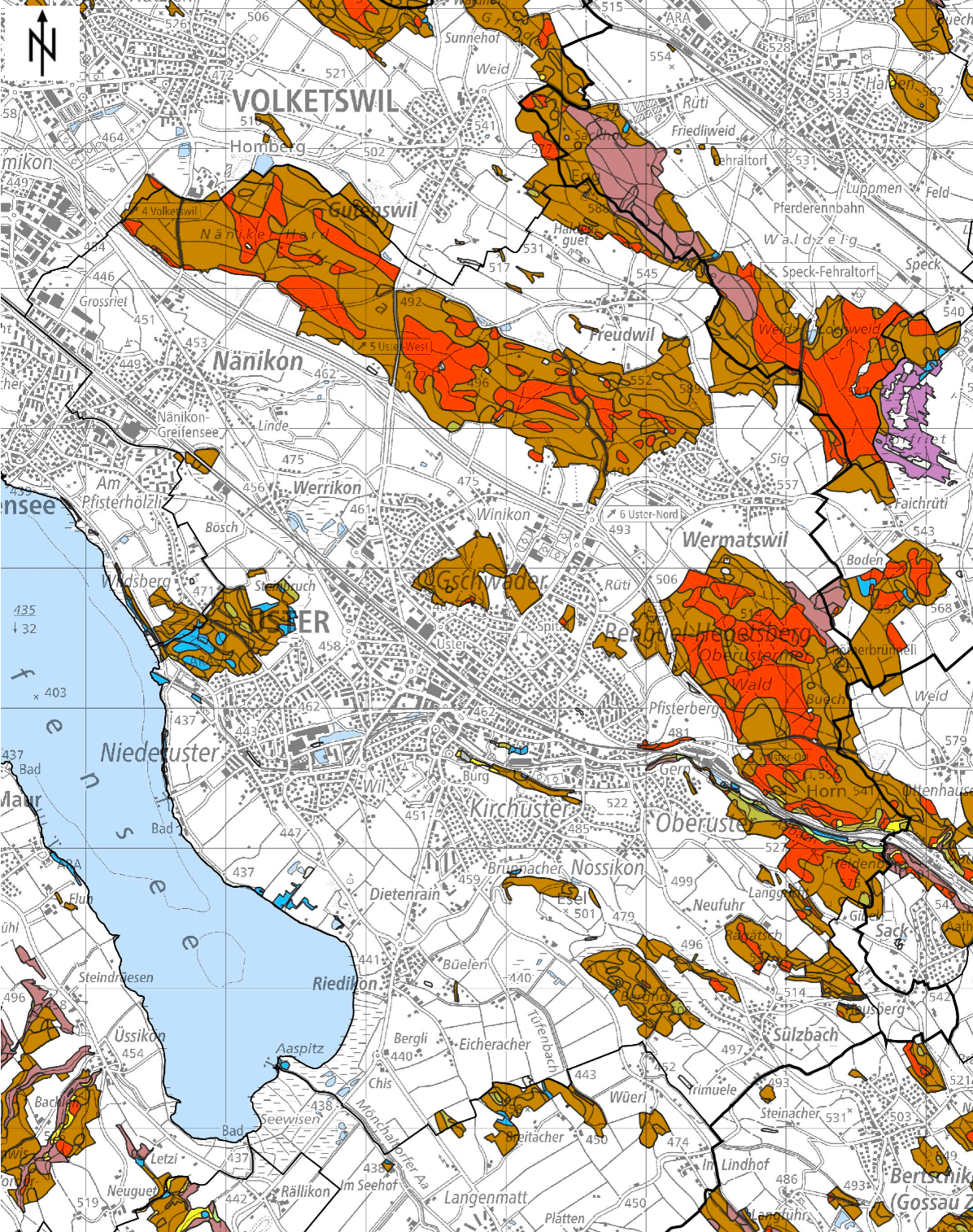 Waldflächen mit Angaben zu den Waldgesellschaften in Uster (Quelle: Kanton Zürich, Link)